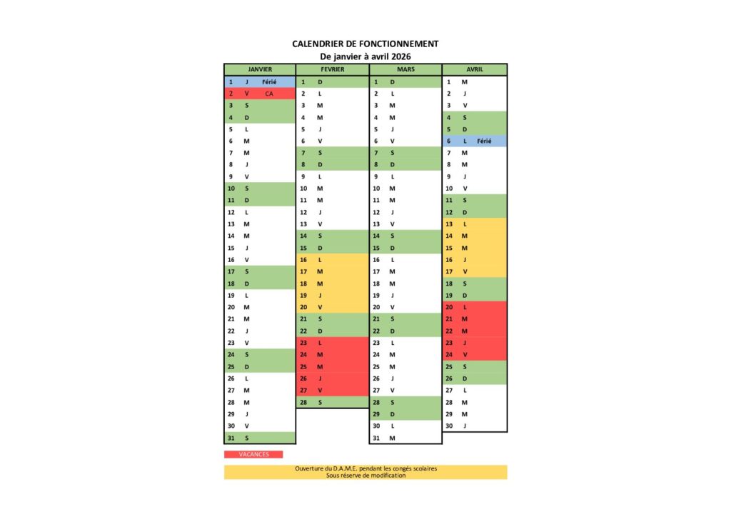 Calendrier de Fonctionnement